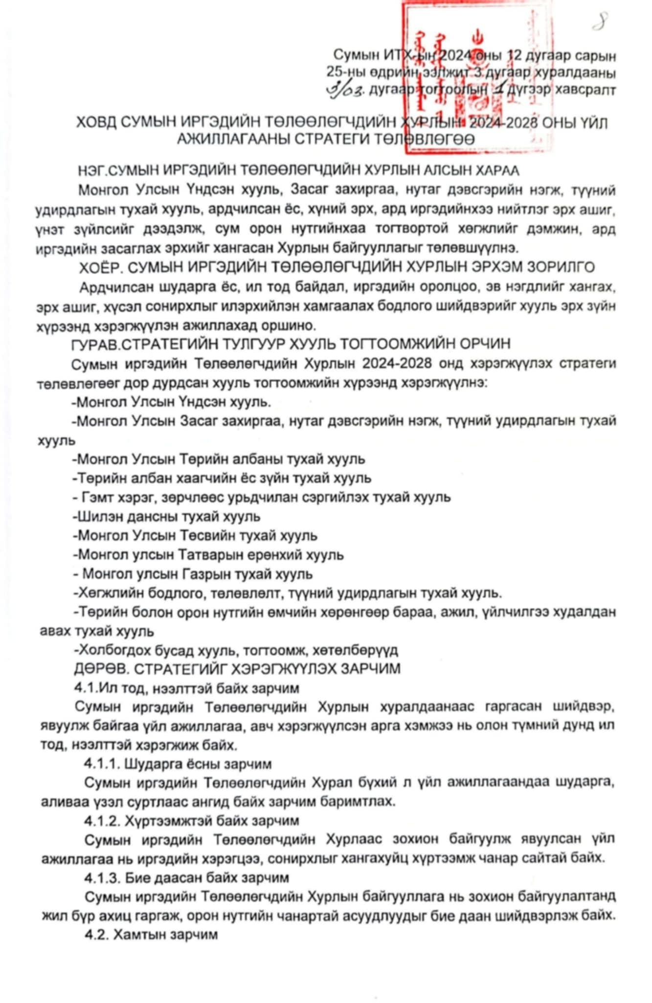Ховд сумын ИТХ-ын стратеги төлөвлөгөө